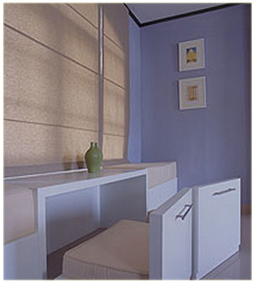 เมื่อเปิดหน้าบานตู้ออก ด้านในเราทำเป็นที่นั่งซ่อนเอาไว้ พอดึงออกมามุมนี้ก็จะกลายเป็นมุมทำการบ้านของเด็ก ๆ ยามที่กลับมาจากโรงเรียน ทำการบ้านไปดูวิวสวย ๆ ไปรับรองไม่เครียดแน่ๆเลย ใครจะทำตามก็ไม่หวง