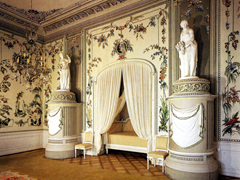 ประตูหน้าต่างตกแต่งด้วยบัวรอบวงกบโดยใช้บัวขนาดใหญ่ชัดเจน เหนือประตูทั่วไปตกแต่งให้หรูหราด้วยไม้แกะลวดลายตัวเป็นรูปเทวบุตรประกอบด้วยลวดลายช่อดอกไม้ล้อมรอบเป็นกรอบรูปเขียนสีบุคคลสำคัญ เตาผิงมีขนาดใหญ่โตสง่าเป็นจุดเด่นของห้อง ตกแต่งด้วยหินอ่อนสีต่างๆ ประกอบด้วยลวดลายแกะสลักอย่างหรูหรา เหนือเตาผิงมีกระจกเงา หรือบัวลูกฟักทาสีล้อมรอบกรอบด้วยลวดลายตามสถาปัตยกรรมอย่างหรูหรา พื้นเป็นไม้โอ๊คปาร์เก้ทำลวดลายตามขนาดของห้อง หรือ เป็นหนี้เป็นหินอ่อนแผ่นสี่เหลี่ยมสลับสีขาวและดำ ปูทับด้วยพรมขนยาวทอเป็นลวดลายกลมกลืนกับขนาดและลวดลายของห้องแต่ละห้องโดยเฉพาะ