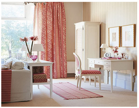 องค์ประกอบที่สำคัญของงานตกแต่งบ้าน ในลักษณะ soft furnishings คือวัสดุที่ทำจากผ้าและสิ่งทอประเภทต่างๆงานตกแต่งที่ดู เด่นๆ ในกลุ่ม soft furnishingsอย่างแรก ได้แก่ “ผ้าม่าน” ซึ่งหน้าที่สำคัญของผ้าม่านคือ ช่วยกรองแสงให้เข้าสู่ตัวบ้านได้อย่างเหมาะสม กันแสงที่ให้ความร้อนมากเกินผิดปกติ ทำให้บ้านไม่ร้อน นอกจากนี้การติด ผ้าม่านชนิดทิ้งชายเป็นแนวยาวจากเพดานจรดพื้น ก็เป็นเทคนิคง่ายๆ ที่สามารถช่วยพรางตาให้ห้องที่มีเพดานเตี้ยดูสูงขึ้นได้