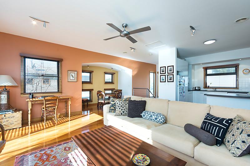 เป็นการออกแบบที่ดูสวยหรูเรียบง่าย ร่วมสมัย ภายตกแต่งผนังโดยการก่ออิฐ เน้นโชว์พื้นผิว พื้นที่รับประทานอาหารเชื่อมต่อกับห้องครัวและห้องนั่งเล่น เปิดโล่งถึงกันหมด ทำให้ดูกว้างขวาง และยังมีสระว่ายน้ำที่ล้อมรอบด้วยสีเขียวของสวนเพื่อเพิ่มความสดชื่นให้กับบ้านอีกด้วย
