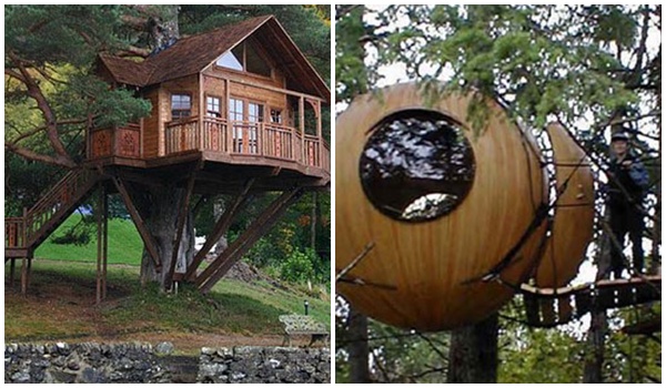 1. บ้านต้นไม้แบบ original คือสร้างบนต้นไม้จริงๆ อาศัยต้นไม้นั้นๆ(อาจจะใช้ต้นเดียว หรือหลายต้นก็ได้) เป็นโครงสร้างหลักเลย ใช้ไม้เป็นวัสดุก่อสร้างหลัก บ้านแบบนี้จะสร้างได้ไม่ใหญ่นัก เพราะต้นไม้มีข้อจำกัดเรื่องขนาด จึงได้ห้องหรือบ้านที่ใช้งานได้แบบเล่นๆ คือใช้อยู่อาศัยจริงไม่ได้ แค่ขึ้นไปนั่งชมวิวเปลี่ยนบรรยากาศ หรือหนีปัญหา ความสับสนวุ่นวายไปหลบซ่อนตัวสักพัก คือเป็นแบบโลกส่วนตัวของเด็กๆได้ บ้านแบบนี้เป็นที่ใฝ่ฝันของเด็กทั้งหลายทีเดียว