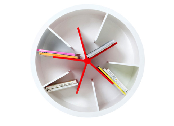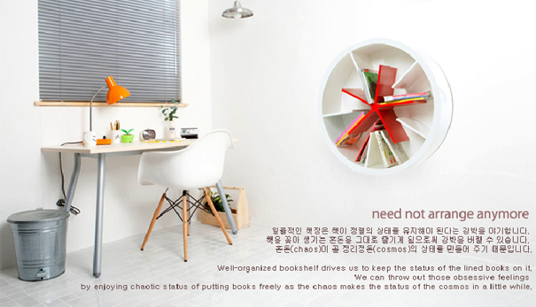 ไอเดียชั้นวางหนังสือดีไซน์สวยๆๆมีมากให้ดูกันอีกแล้วค่ะกับ ชั้นวางหนังสือ Need Not Arrange Anymore โดยการออกแบบของ Kim Ji-hye ซึ่งตัวชั้นวางหนังสือจะมีลักษณะเป็นวงกลมและจะมีแกนตรงกลาง ดูแล้วสวยแปลกตาดีค่ะ