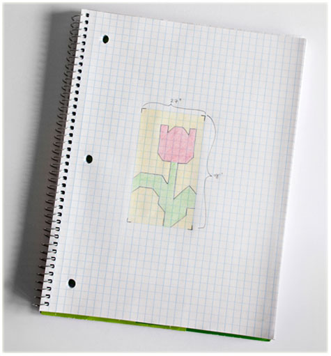 ตัวอย่างลวดลายที่เค้าวาดลงในสมุดกราฟ ก่อนลงมือทำจริง