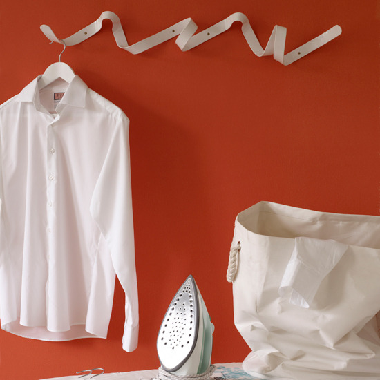 สุดยอดไอเดียที่แขวนผ้าหลังจากรีด พร้อมการตกแต่งผนังห้องด้วนสีส้ม ดูสดใส