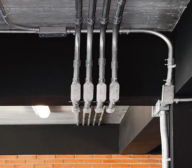 ท่อเหล็กชุบแกลแวไนซ์มีลักษณะเหมือนกับท่อประปาแต่บางกว่า ข้อดีคือเป็นวัสดุไม่ติดไฟ ทนต่อแรง