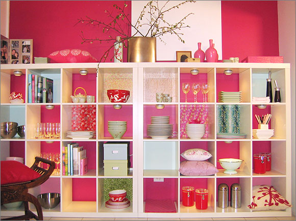 ชั้นวางของเป็น ช่องสี่เหลี่ยม ที่ใช้สอยและตกแต่งได้เข้ากับห้องสีสันสดใส จริงๆคะ