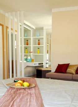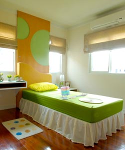 ห้องนอนเล็ก 2 ห้อง ตกแต่งให้ Modern ใช้สีหลักของทั้ง 2 ห้องด้วยสีขาวสอดแทรกความเป็น Contemporary ด้วย design ส่วนต่างๆ ของห้องด้วยไม้สีธรรมชาติ สร้างเอกลักษณ์เฉพาะของห้องทั้งสองให้แตกต่างกันห้องแรกใช้รูปทรงเรขาคณิตเข้ามาเพิ่มลูกเล่นในส่วนของ Head board นอกจากนี้แล้วยังเพิ่มสีเขียวตองส่วนที่เป็นสมัยใหม่ให้กับห้อง ทำให้ห้องรู้สึกสดชื่น สบายตา ตัดกับสีขาวที่ให้ความรู้สึกโปร่งสะอาด รู้สึกเหมือนได้พักจริงๆ เมื่ออยู่ในห้องนี้