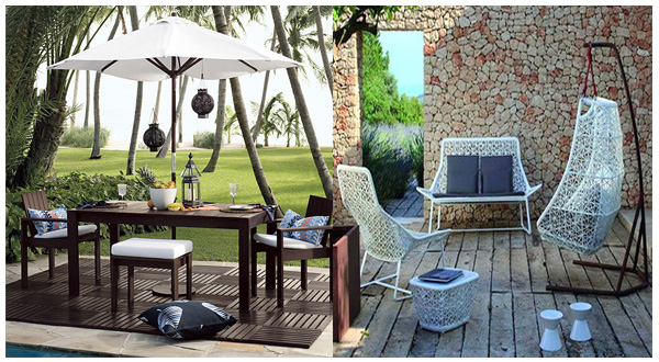 หลักสำคัญที่ควรคำนึงในการเลือกประเภทเฟอร์นิเจอร์สำหรับตกแต่งภายนอกบ้าน จะต้องเน้นเรื่องความสะดวกสบายต่อการใช้งานของบุคคลภายในครอบครัว รูปทรงลักษณะการออกแบบที่สวยงาม และมีความเข้ากันได้กับส่วนอื่นของบริเวณบ้านภายนอกได้อย่างลงตัวไม่ดูโดดเด่นมากจนเกินไป สำหรับเฟอร์นิเจอร์ที่ผลิตจากวัสดุประเภทอลูมิเนียม มีความเป็นเอกลักษณ์และมีการดีไซน์ที่ทันสมัย น้ำหนักเบา สามารถโยกย้ายเคลื่อนที่หรือปรับเปลี่ยนไปยังตำแหน่งใดของบ้านได้โดยง่ายหรือเฟอร์นิเจอร์ที่ผลิตจากวัสดุประเภทพลาสติกก็จะสามารถหล่อขึ้นรูปได้ตามความต้องการและการออกแบบ มีรูปทรงที่แปลกตา ช่วยให้คุณรู้สึกผ่อนคลาย ปลดปล่อยตัวเองจากการทำงานที่เหน็ดเหนื่อย มีสีสันที่สวยงามหลากหลายให้เลือก และง่ายต่อการเคลื่อนย้ายด้วยเช่นกัน ทั้งนี้ เฟอร์นิเจอร์สำหรับจัดมุมพักผ่อนภายนอกบ้านจะต้องมีความแข็งแรงคงทน และสามารถนำไปประยุกต์ใช้กับห้องต่างๆ ภายในบ้านได้อีกด้วย