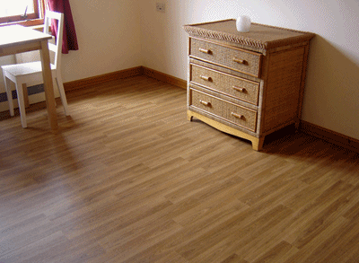 3.ปูและติดตั้งไม้พื้นปาร์เกต์สำเร็จรูปประเภทแซนวิช 3 ชั้น ในระบบลอยตัว (ไม่ได้ยึดด้านหลังของแผ่นไม้พื้นติดกับพื้นคอนกรีต) และปูเป็นรูปลายปล่อย โดยใส่กาวเฉพาะในร่องทางด้านข้างและด้านปลายของแต่ละแผ่นแล้วเคาะอัดเข้าด้วยกัน กาวที่ใช้จะเป็นกาวปาเก็ตโต้ #1 ซึ่งเป็นมาตราฐานสำหรับปูไม้พื้นปาร์เกต์สำเร็จรูปโดยเฉพาะ