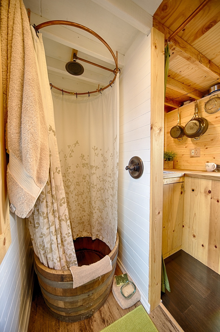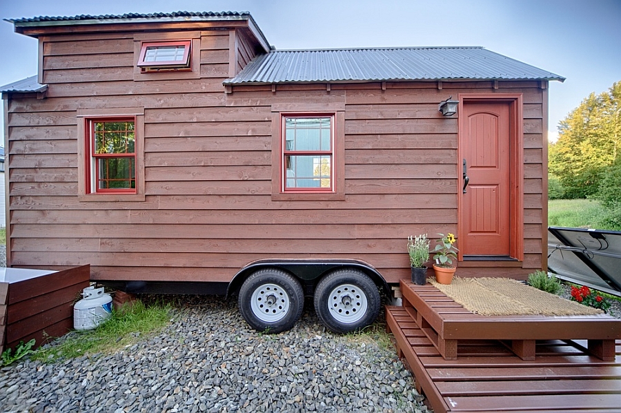 บ้านไม้เคลื่อนที่ขนาดกระทัดรัด น่าอยู่ บ้าน DIY หลังนี้ เจ้าของบ้านใช้เงินในการตกแต่งเพียง 20,000$ สร้างโดย Malissa and Chris Tack มีพื้นที่ใช้สอยเพียง 140 ตารางฟุต มีแผงโซล่าเซลล์ ใช้ในการรับพลังงานจากแสงอาทิตย์ ตัวบ้านออกแบบให้มีหน้าต่างโดยรอบเพื่อระบายอากาศได้ดีและเพียงพอ มีห้องนั่งเล่นขนาดเล็ก มีห้องครัวที่ตกแต่งออกมาดูมีพื้นที่กว้างจนน่าแปลกใจ