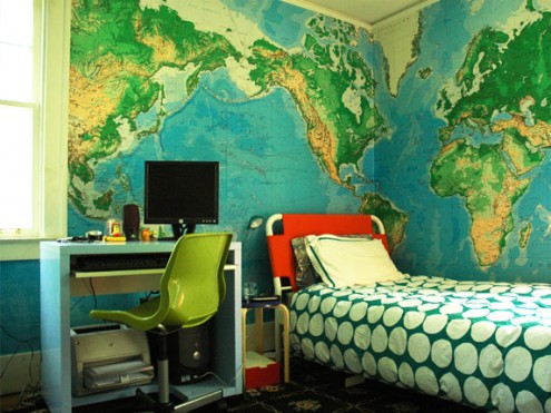 ห้องสุดท้ายเจ๋งสุดค่ะ นำรูปโลกมาเพ้นท์กันเลยทีเดียว แต่ดูแล้วก็กู๊ดไอเดียมากๆ เลยน่ะค่ะ มันทำให้ห้องของเราดูน่าสนใจขึ้นมามากๆ เลยละค่ะ